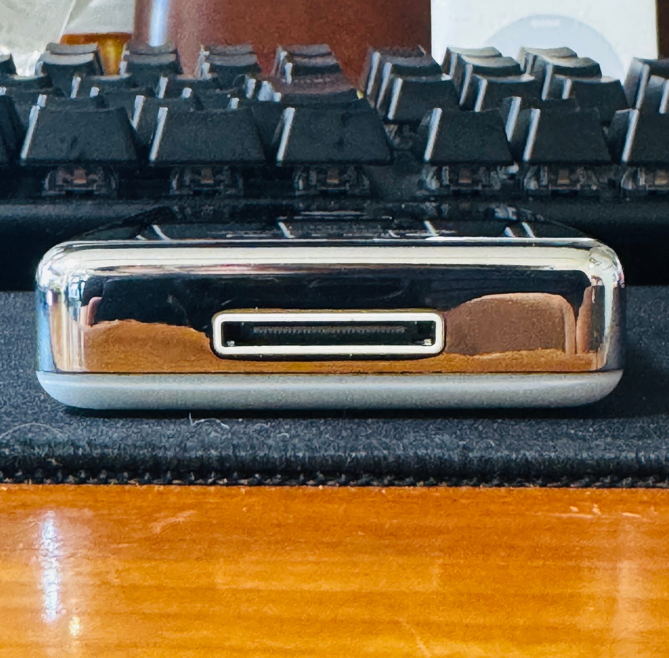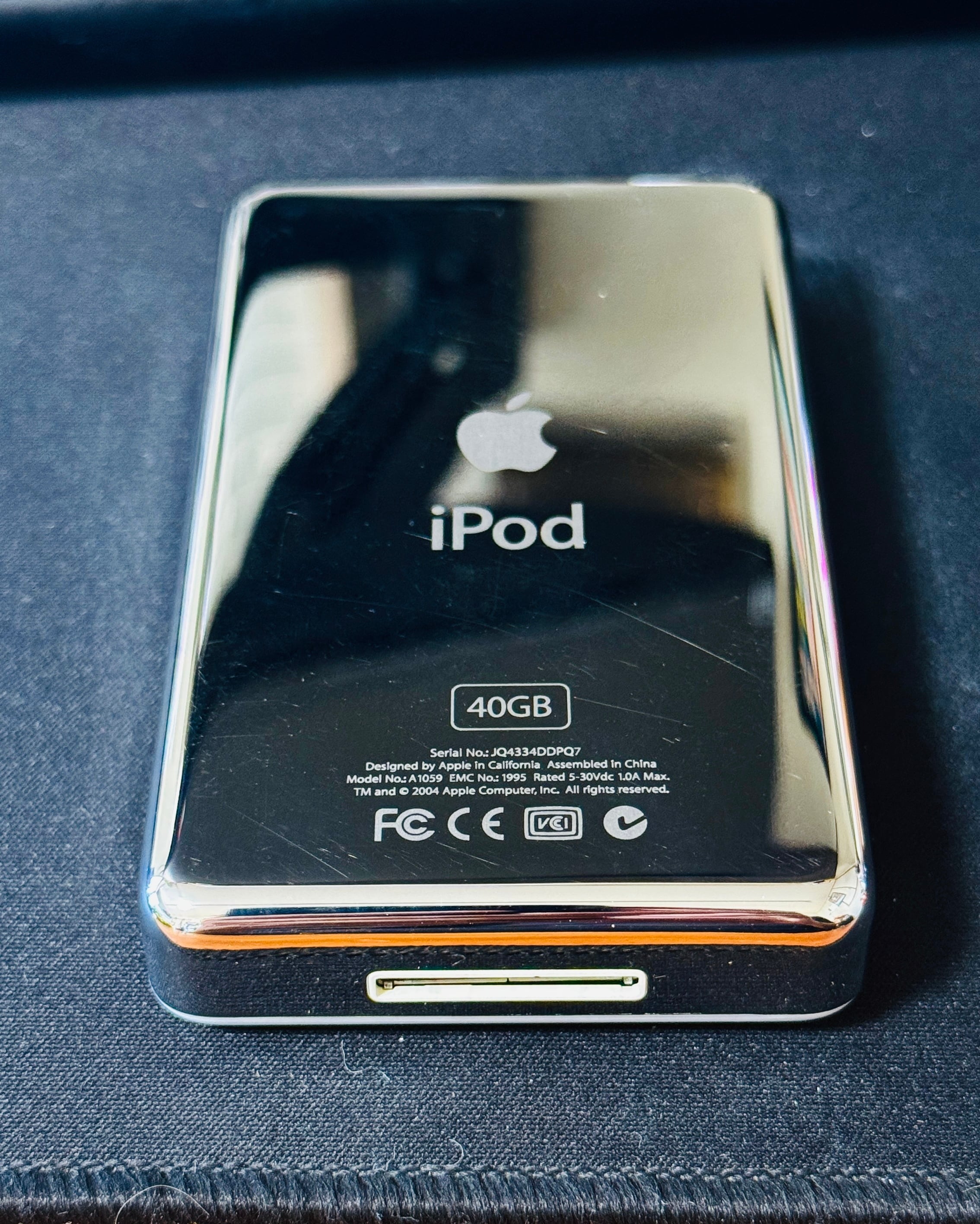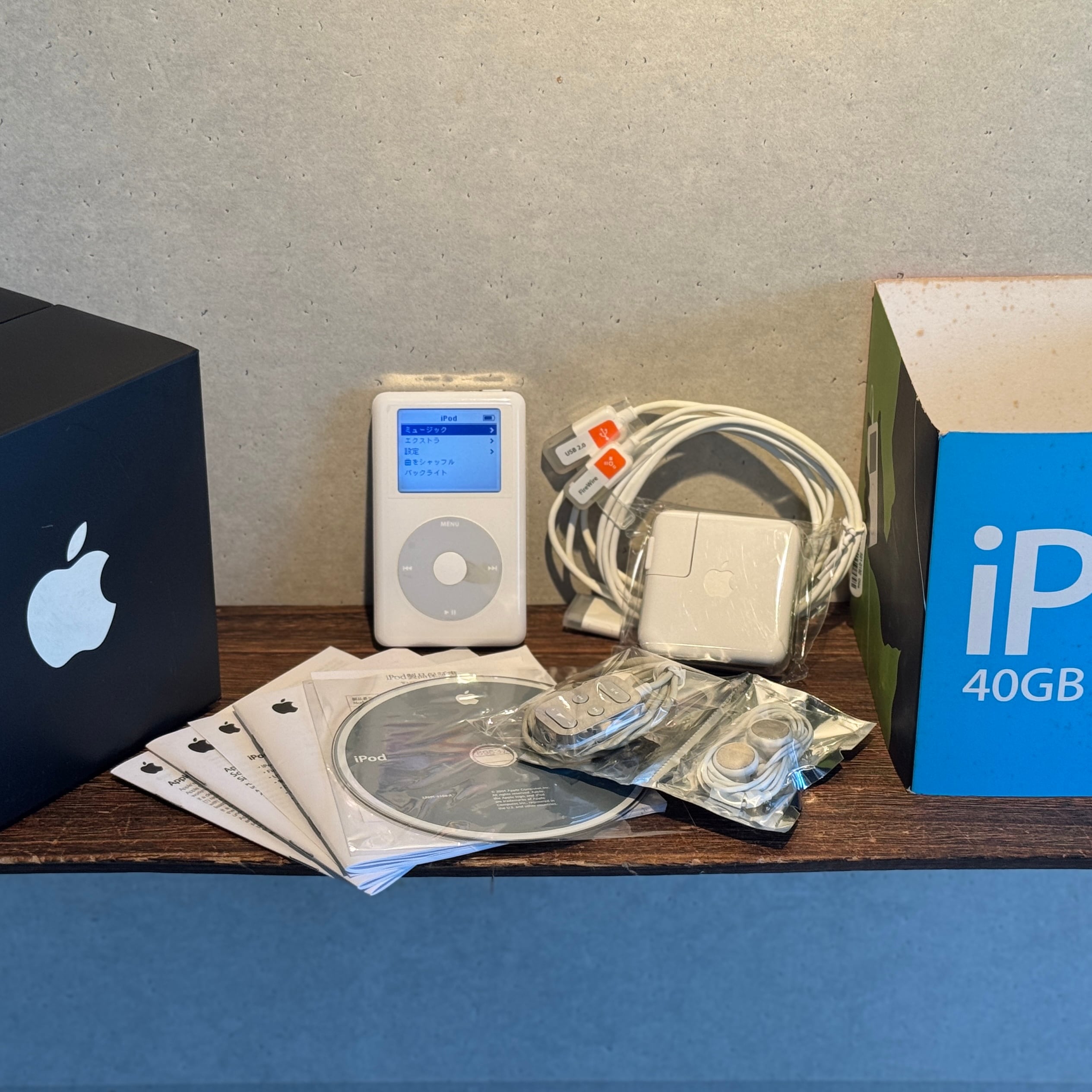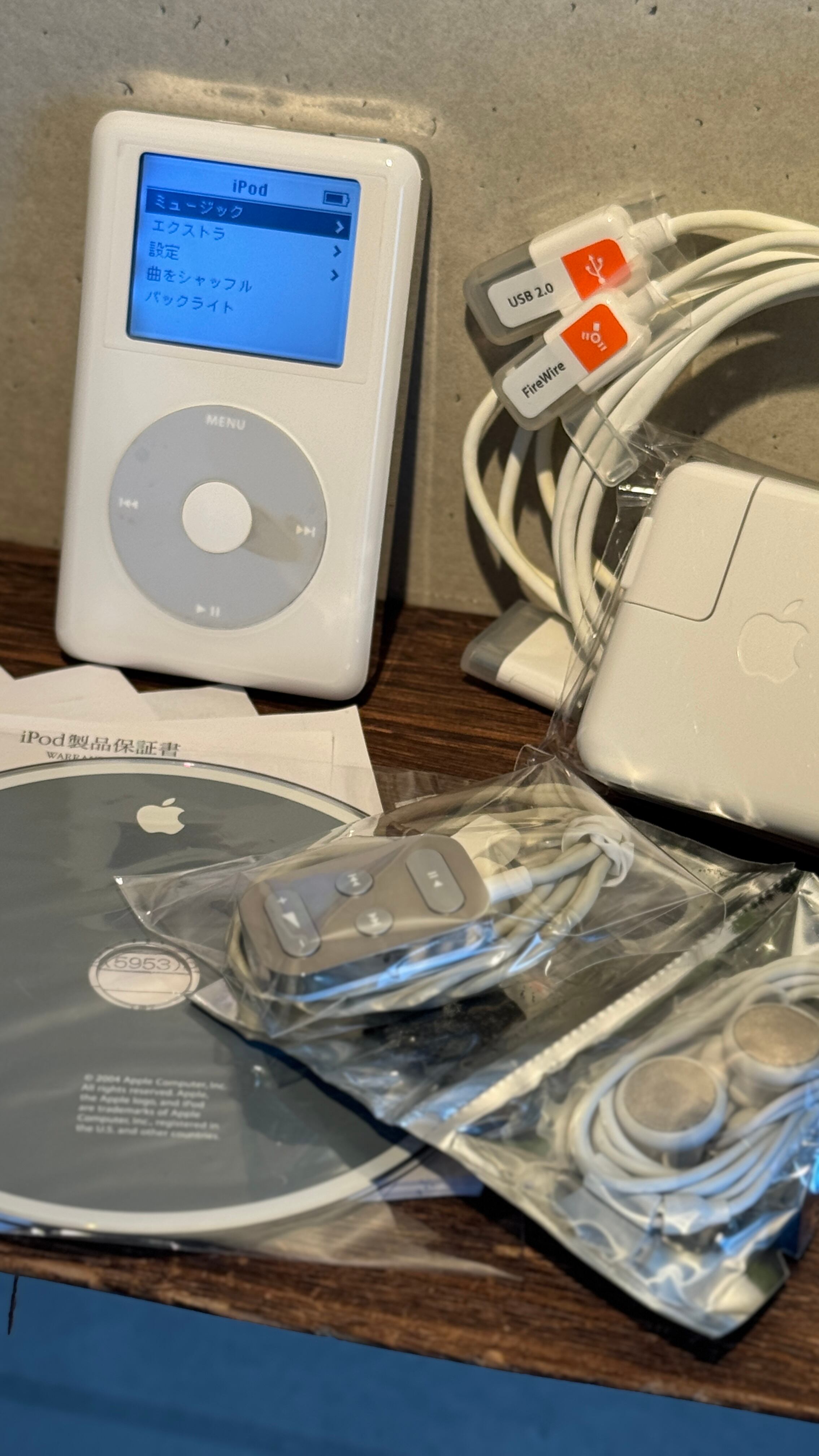40GBモデルは、20GBモデルに比べて少し厚みがありますが、その分「手に持った時の安定感」と「メカとしての重厚感」が格別です。完全放電時は必ず付属の12V(FireWire)充電器をご使用ください。