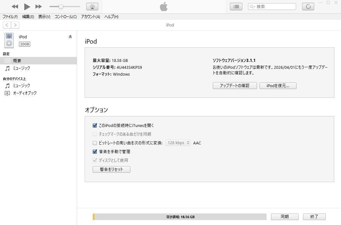 - モデル: iPod 第4世代 20GB M9282J/A