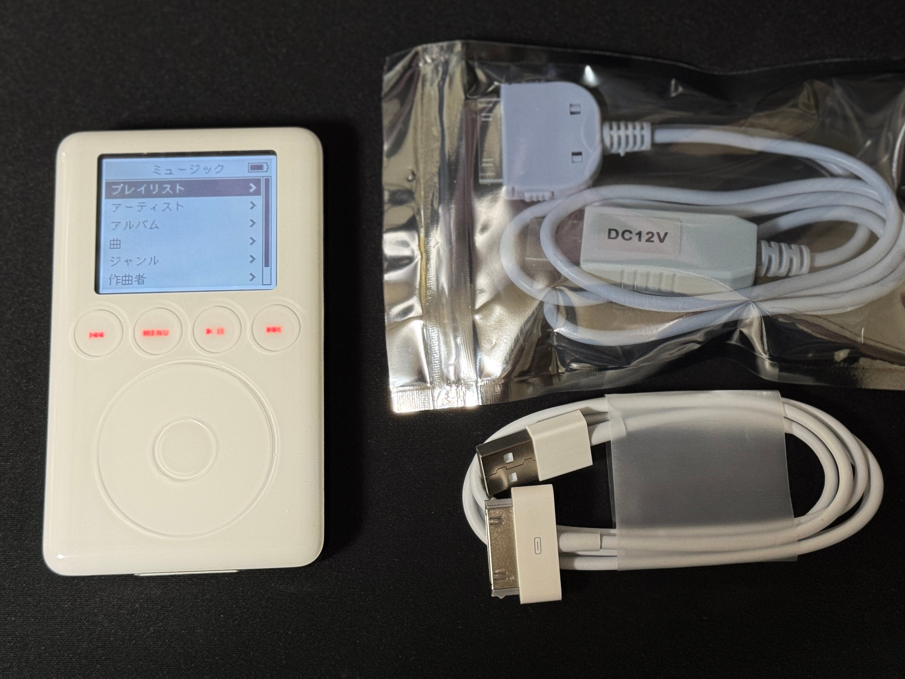 【USB充電OK】iPod 3rd 10GB A1040 ★12V給電USBケーブル付★ FireWire不要で充電OK!動作確認済 Wolfson製DAC搭載★高音質