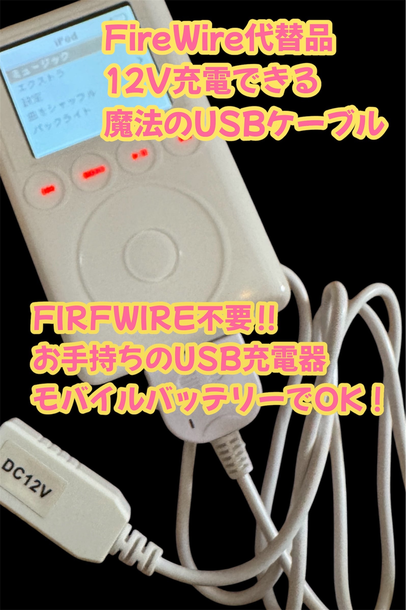 ・12V給電が出来る魔法のUSB充電ケーブル(Firewire代替品)
