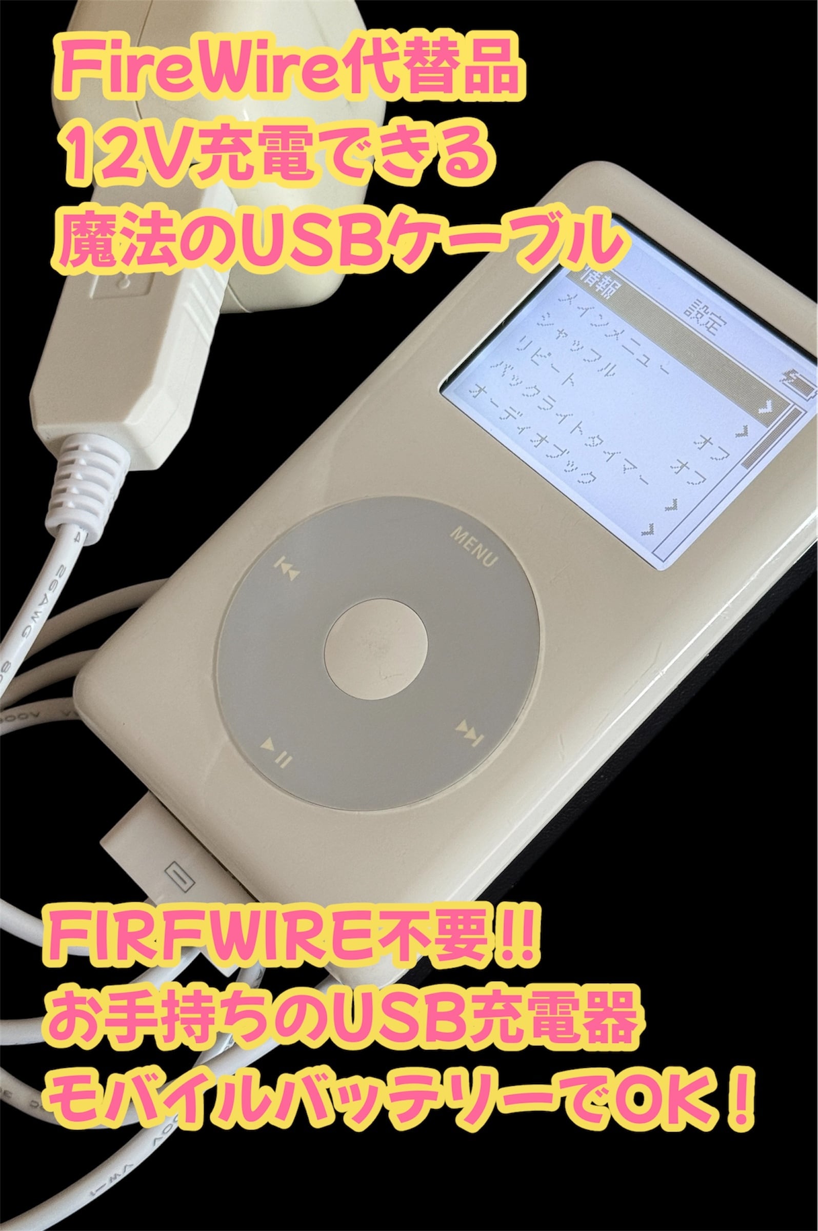 本来、iPod 3rdの充電には12VのFireWire環境が必須でした。しかし、この「12V昇圧・魔法のUSBケーブル」があれば、高価で入手困難な純正FireWireアダプタや専用ケーブルはもう必要ありません。