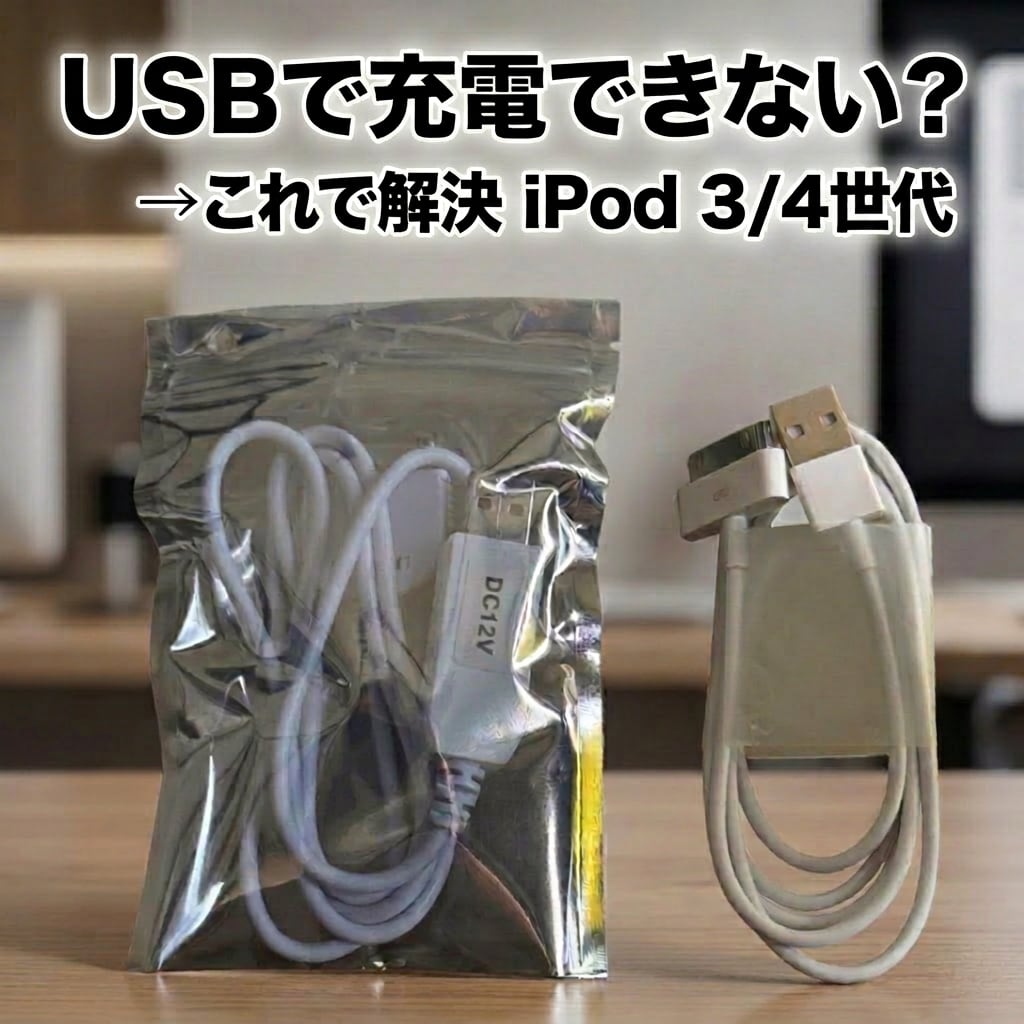 【復活】iPod 3/4世代|USBで充電できる専用ケーブル|FireWire不要・国内発送